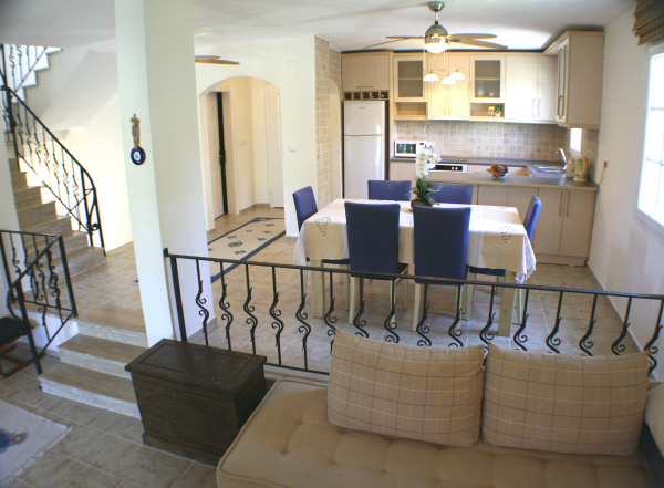 This is an extremely spacious villa of 200 square metres covering three storeys and comprising 4 bedrooms (2 double and 2 twin). The ground floor is a substantial open-plan kitchen, dining and living area which opens out onto a covered terrace which is furnished with a further dining table and chairs to seat up to 8 people - perfect for outside dining.